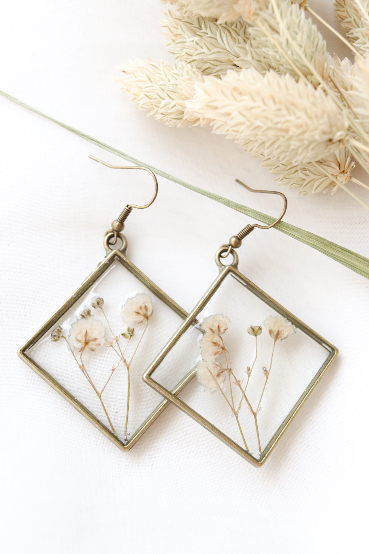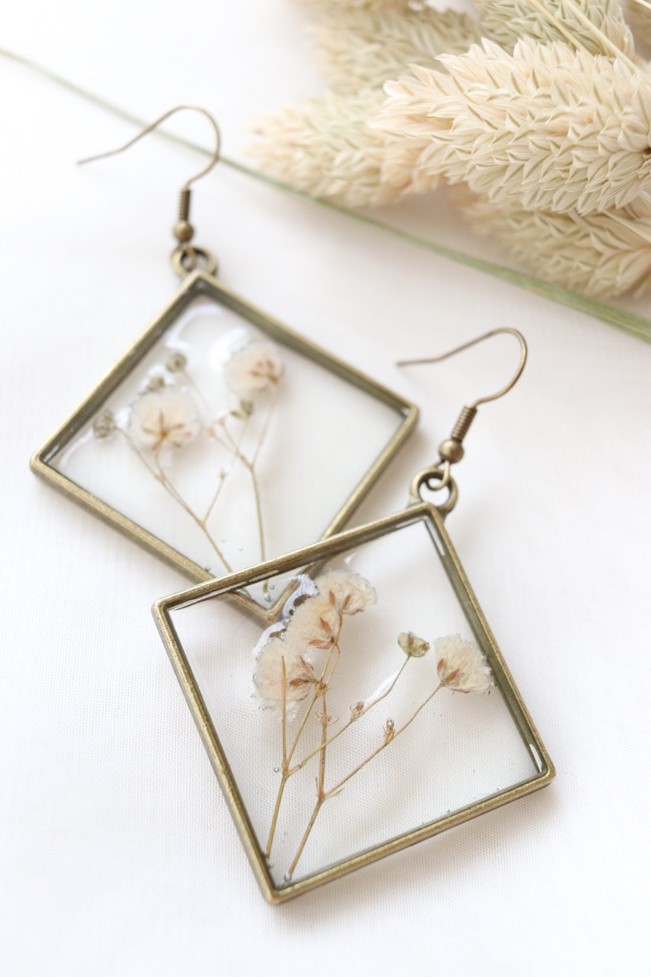 Bonnie is handmade from multiple thin layers of resin and beautiful white baby's breath flowers in a square vintage bronze frame