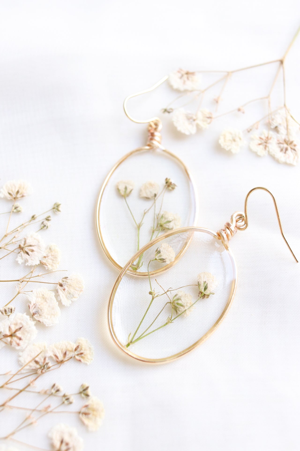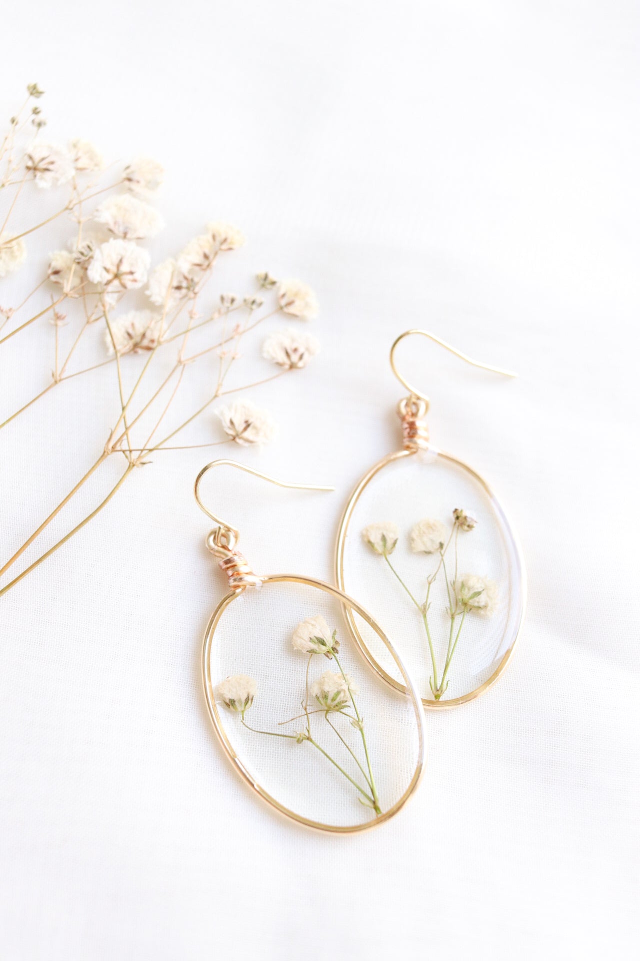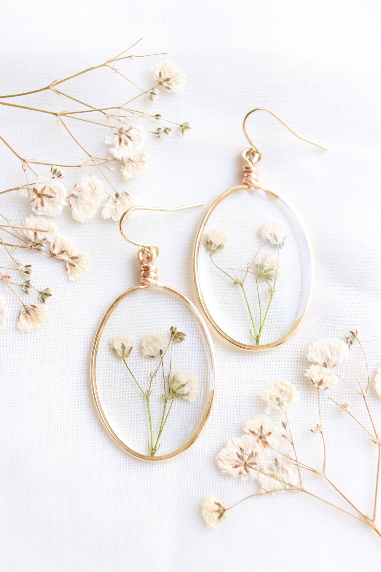 Please Note: We use natural, real flowers, which means each flower cluster/arrangement will be naturally varied. This is what makes this pair of earrings unique because no one else will have the exact same flowers as you.