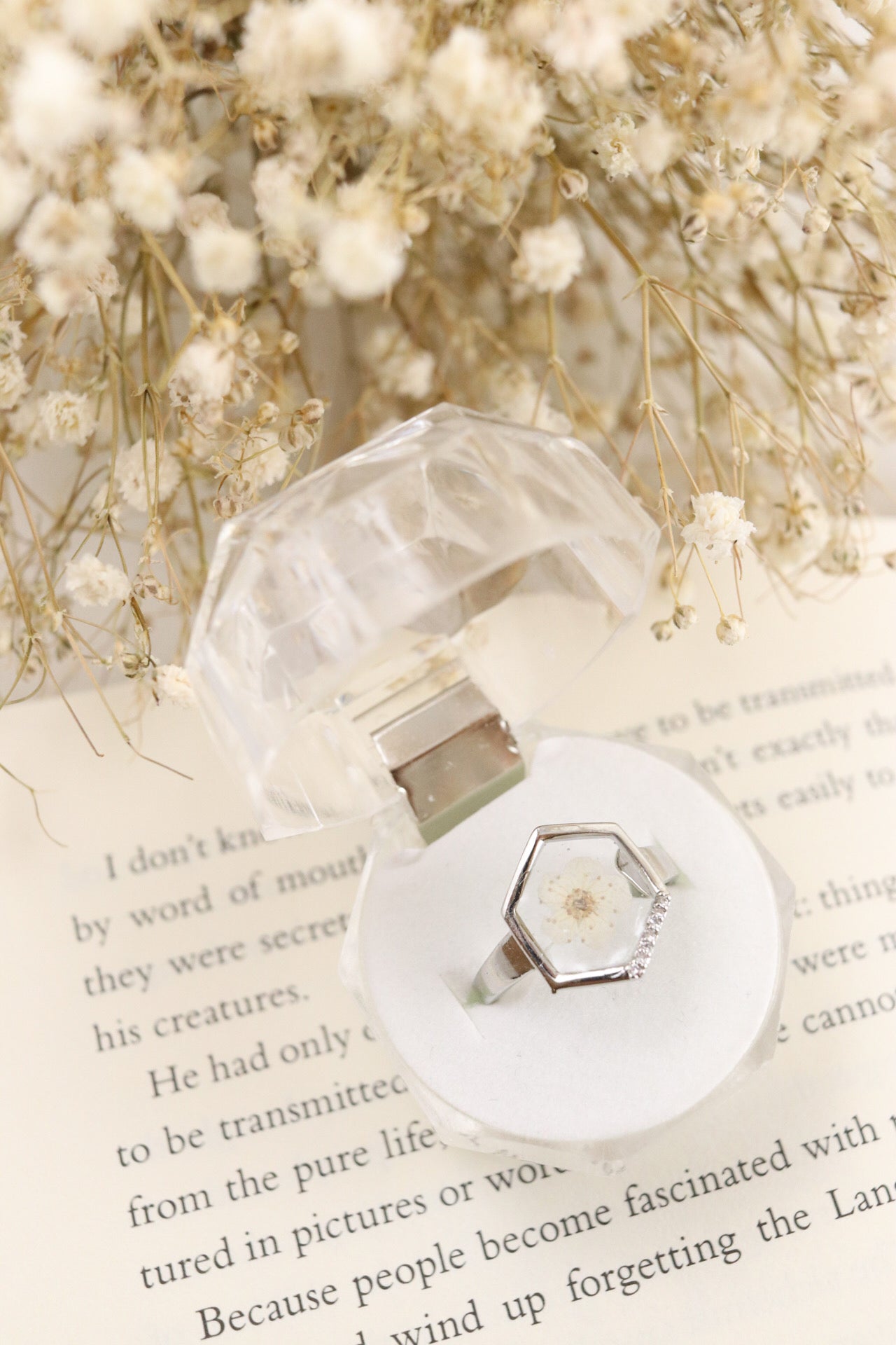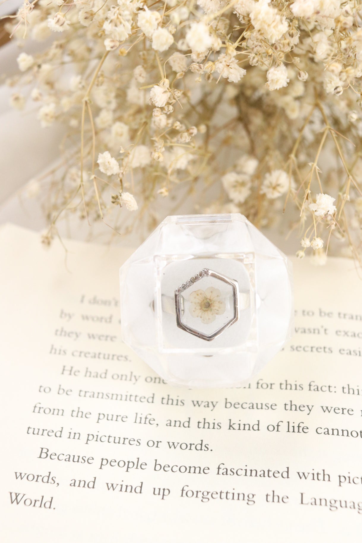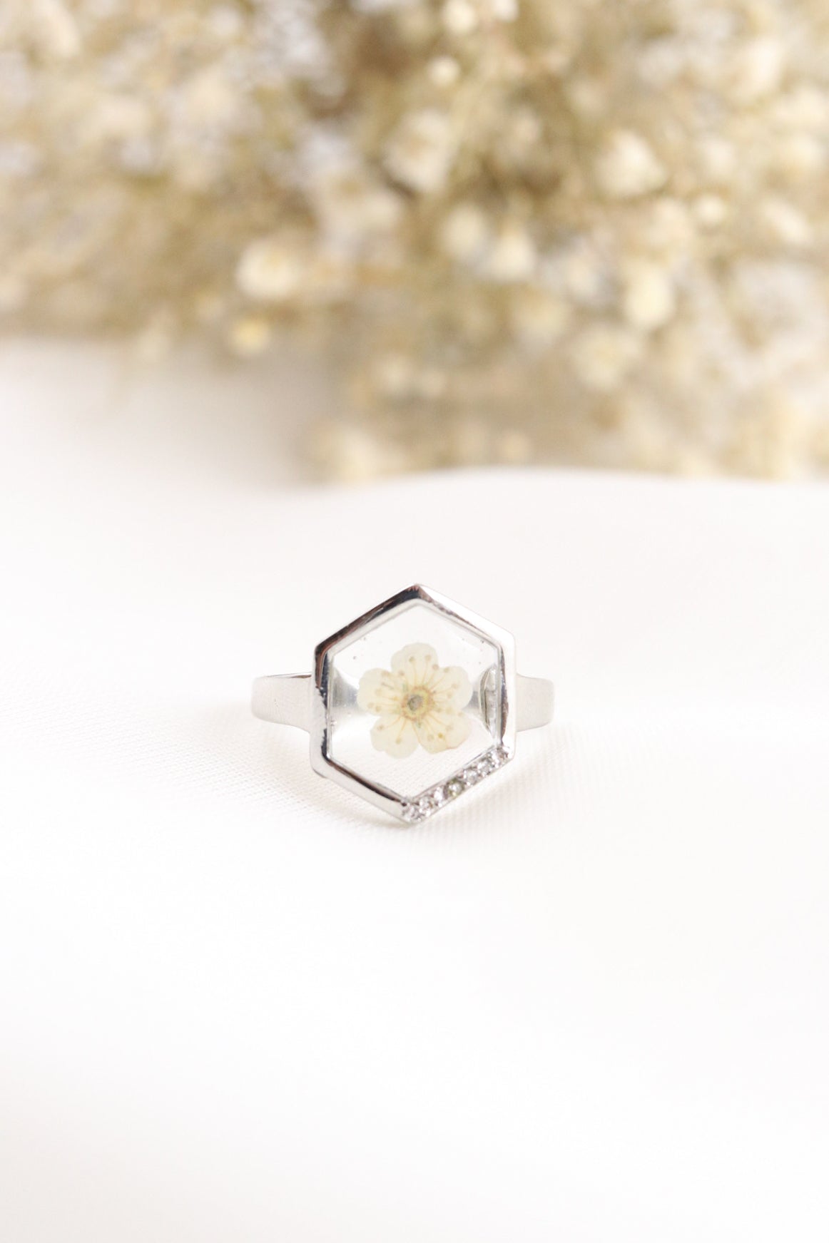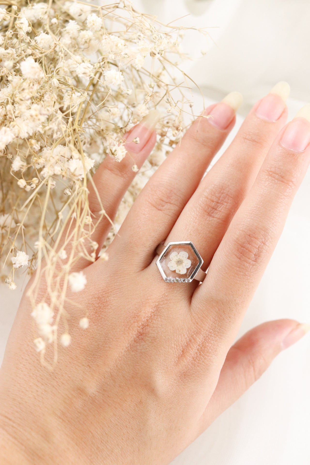 Geo is handmade from multiple thin layers of *premium quality resin and beautiful delicate white forget-me-not flowers.