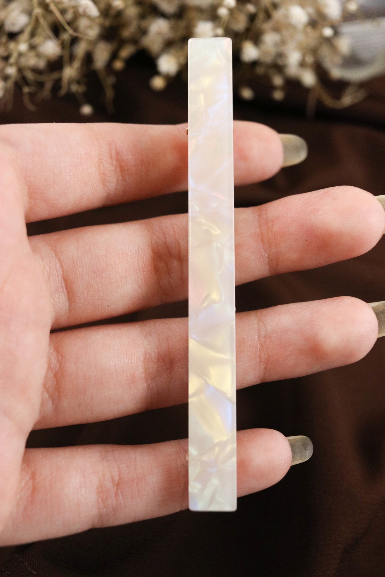 The Lumi is handmade from multiple thin layers of resin with an iridescent look