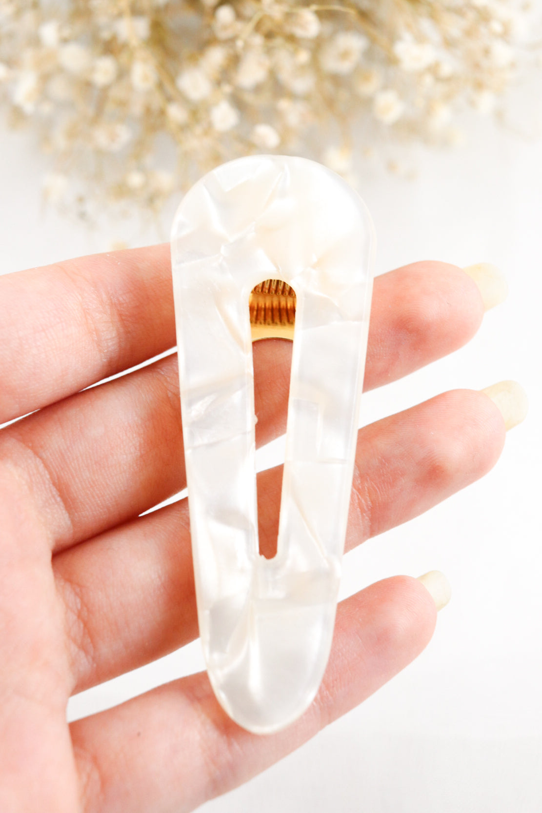 The Pearl is handmade from multiple thin layers of resin colored white with a shiny pearl-like look