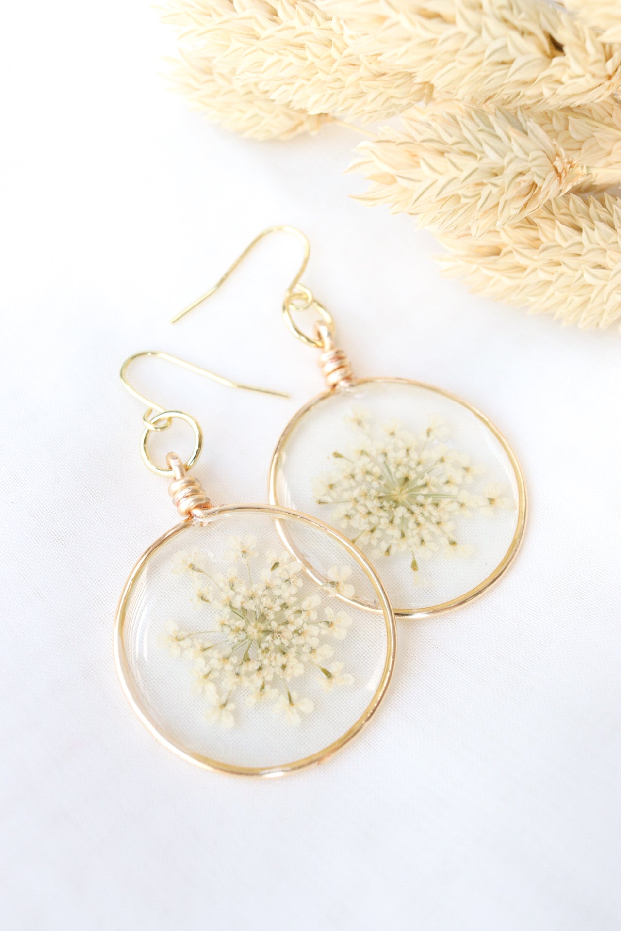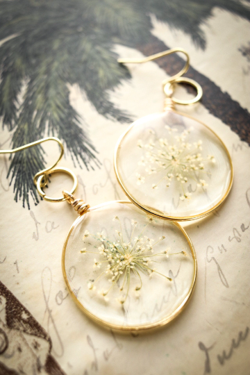 Rae is handmade from multiple thin layers of resin and beautiful white Ammi flowers