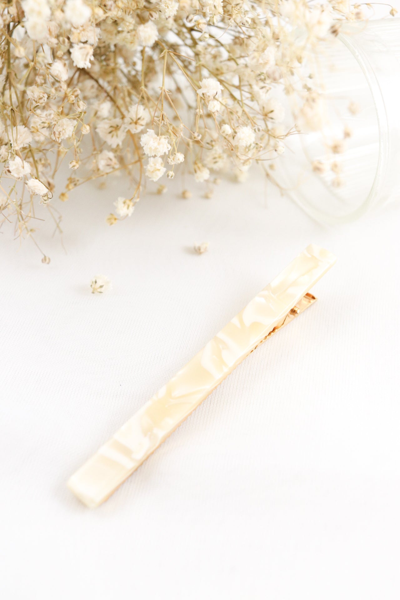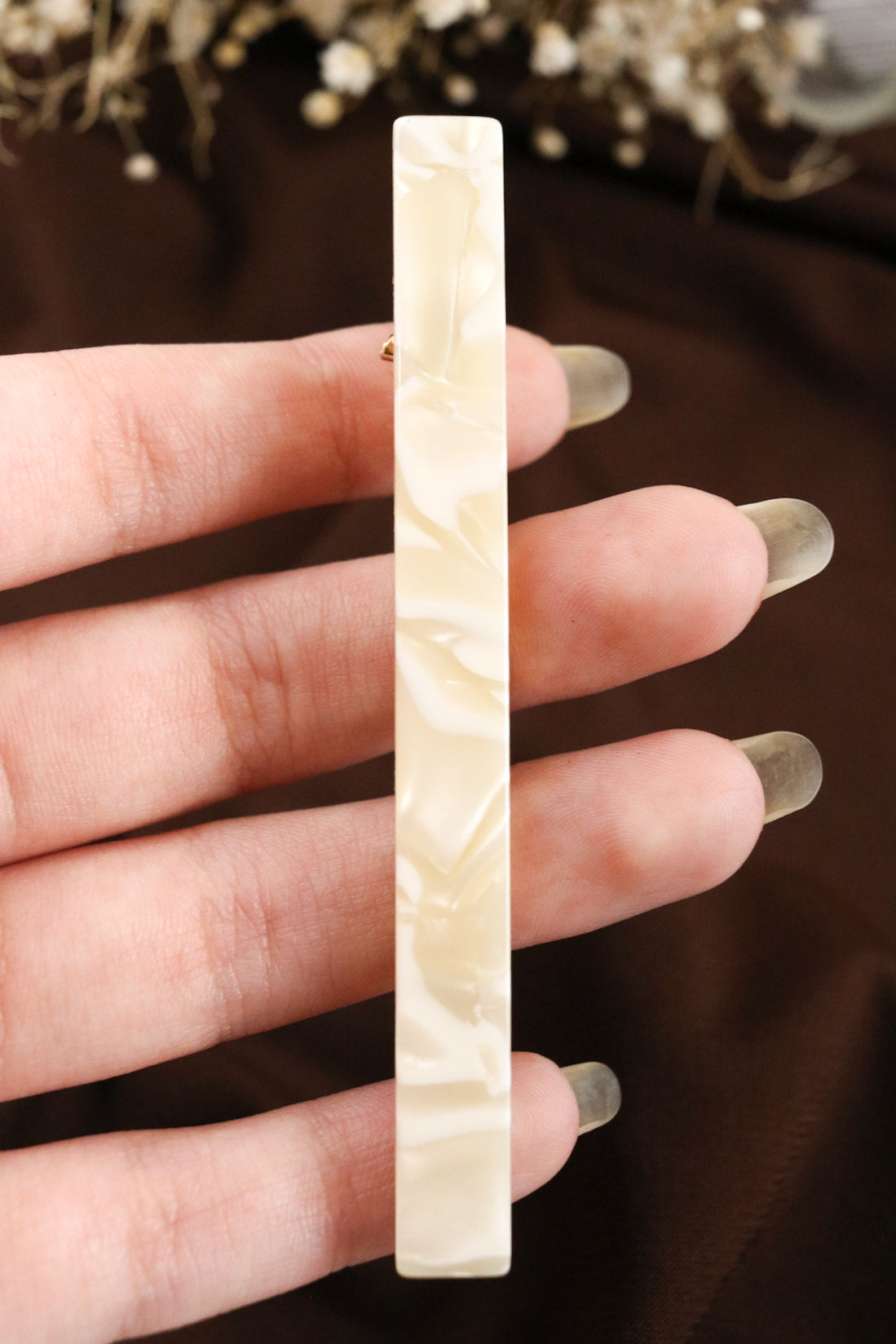 The Shimmer is handmade from multiple thin layers of marbled beige resin with a pear-like look