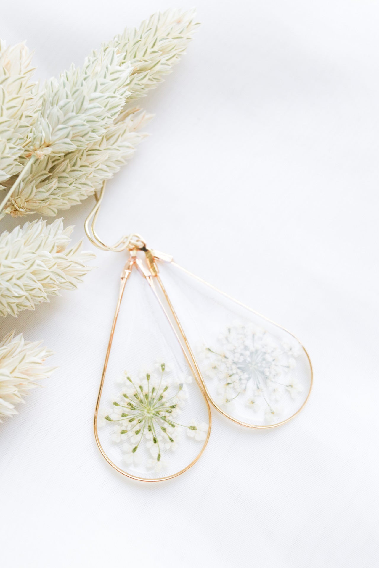 The White Spark is handmade from multiple thin layers of resin and cute white Ammi flowers